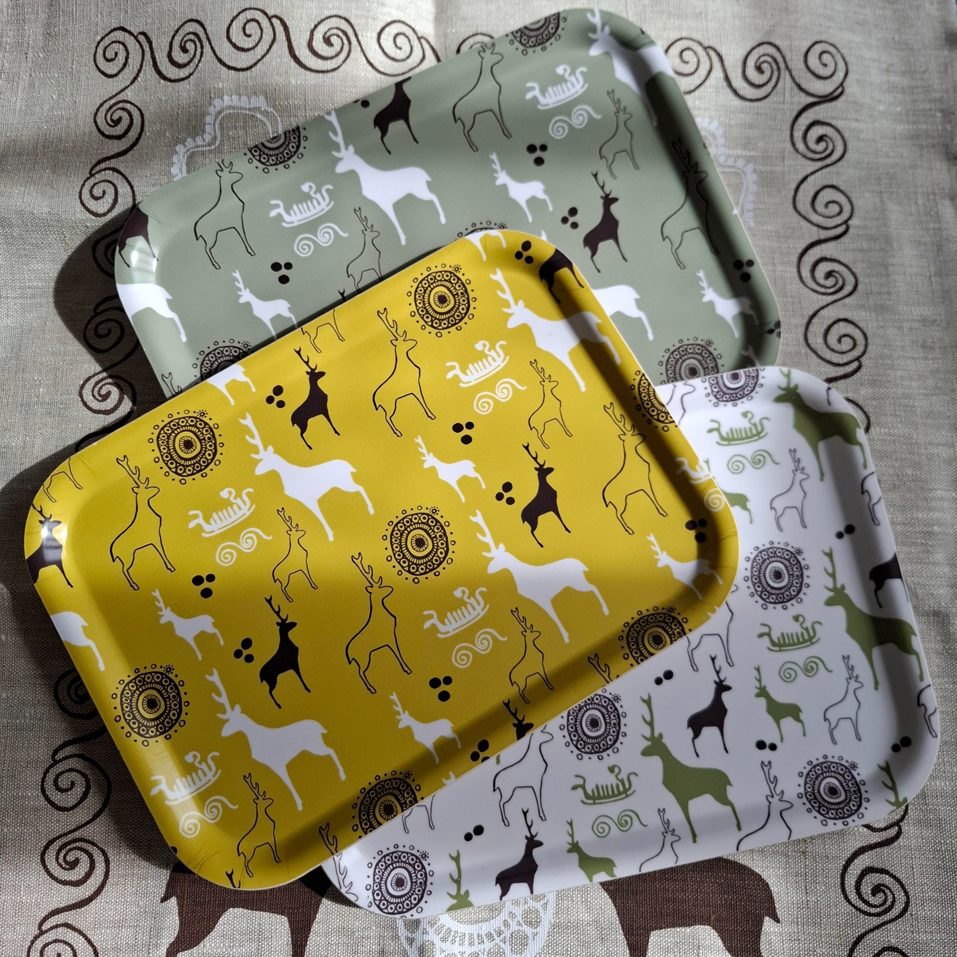 Tillverkade i Sverige i tåligt laminerat björkfaner. Storlek 20x27 cm – perfekt till frukosten, fikat eller som present. Motiven matchar handdukarna.